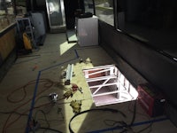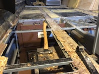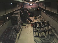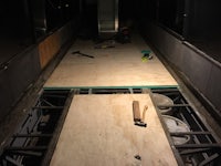 This is taking the parcel racks down - huge projects as they were literally installed as one long unit - had to cut them with sawzall as I unbolted sections from roof.