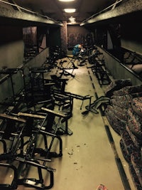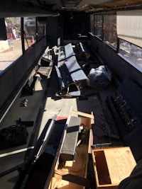 Working on seats!! Took in all about 2 days to get them all unbolted and out of bus.